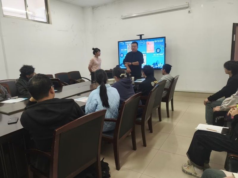 宣讲结束,同学们积极提问公司业务方面知识以及实习工资,福利等问题。王经理以分享自己一天的工作安排的角度为同学们解答,表示工作地点根据自身需求分配,前期主要任务是维护客户,销售岗研究生占比接近百分之二十。最后,有意向的同学与公司招聘人员更进一步交流,多名学生提交简历。