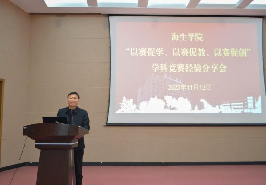 为搭建学科竞赛经验交流平台,助力学院老师和学生系统掌握备赛策略、提升竞赛能力,11月12日海生学院于五四报告厅举办了学科竞赛经验分享会。会议围绕“以赛促学,以赛促教,以赛促创”的主题,特邀李朝霞、欧江涛、聂庆、杨磊4位老师及优秀毕业生刘丹进行经验分享。会议由海生学院副院长张丽主持,党总支书记高留才、院长彭斌、学工办主任郭海松、教科研办公室副主任陈小冬、新生辅导员许璐出席,海生学院2024级、2025级学生参加。