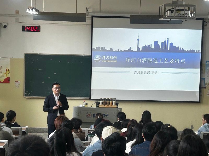 4月10日下午,江苏洋河酒厂股份有限公司生产部王铁部长,江苏菌钥生命科技发展有限公司综合行政部蔡金文部长(江苏省本科产业教授-盐城工学院)应海生学院食品科学与工程专业系邀请,分别为我院食品科学与工程专业2021级100余名本科生和2022级相关专业研究生讲授了一堂别开生面的企业生产案例分享。王铁部长主要讲述了洋河集团的发展历史、洋河白酒酿造工艺及特点、白酒未来发展方向及企业对学生能力需求等内容。蔡金文部长主要讲述了药食同源重要发酵现状与产业化应用、中药发酵体系的作用机制研究(肠道菌群、生物利用度等)、企业的招聘需求及给即将毕业的大学生建议等内容。