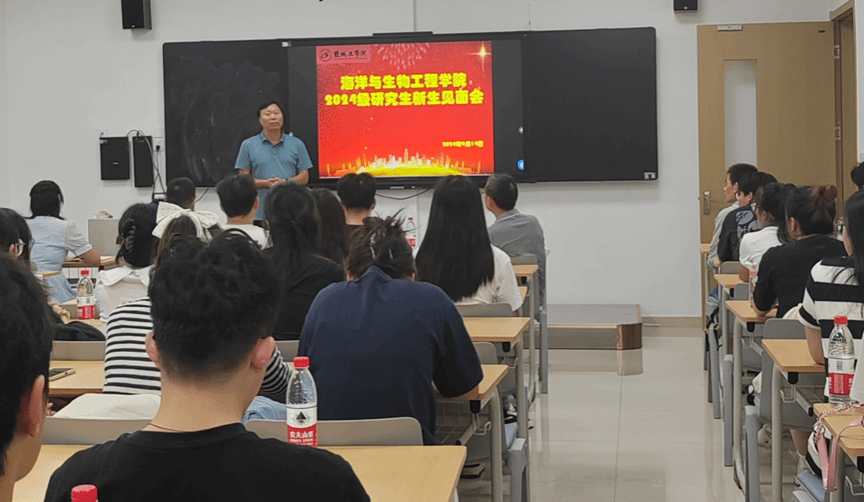 9月14日下午,海洋与生物工程学院2024级研究生新生见面会在盐龙湖先进技术研究院教学楼401教室举行。海生学院院长彭斌、党总支书记高留才、副院长齐志涛、张丽,党总支副书记孙新华、教科研办公室学科秘书陈小冬和吕永梅,研究生新生代表等40余人参加。会议由副院长齐志涛主持。