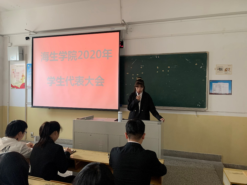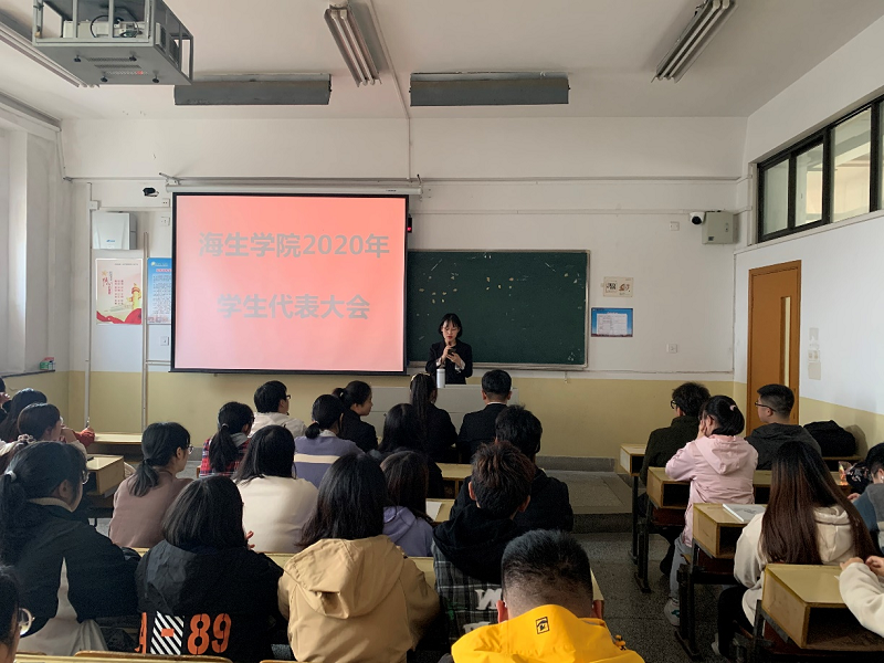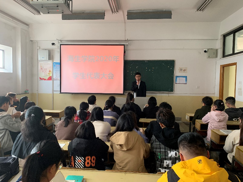 2020年11月19日中午,在北校区知行楼406,海生学院召开第七次学生代表大会,学院学生会主席团候选人,全体学生代表参加。