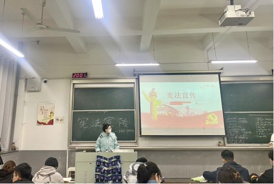 12月1日至3日晚上,学生们或在宿舍、或在教室、或在图书馆,手机、电脑等各种移动设备齐上阵,从经济、教育、医疗等多个方面进一步了解宪法条例,沐浴宪法力量,感受宪法阳光;12月1日下午,在学院会议室举办了“维护宪法尊严,履行宪法义务”主题讲座,团委副书记王珂通过解读宪法、视频科普等方式,引导学生认真学习宪法,牢记宪法使命,维护宪法尊严,履行宪法义务,新生代表80余人参与。