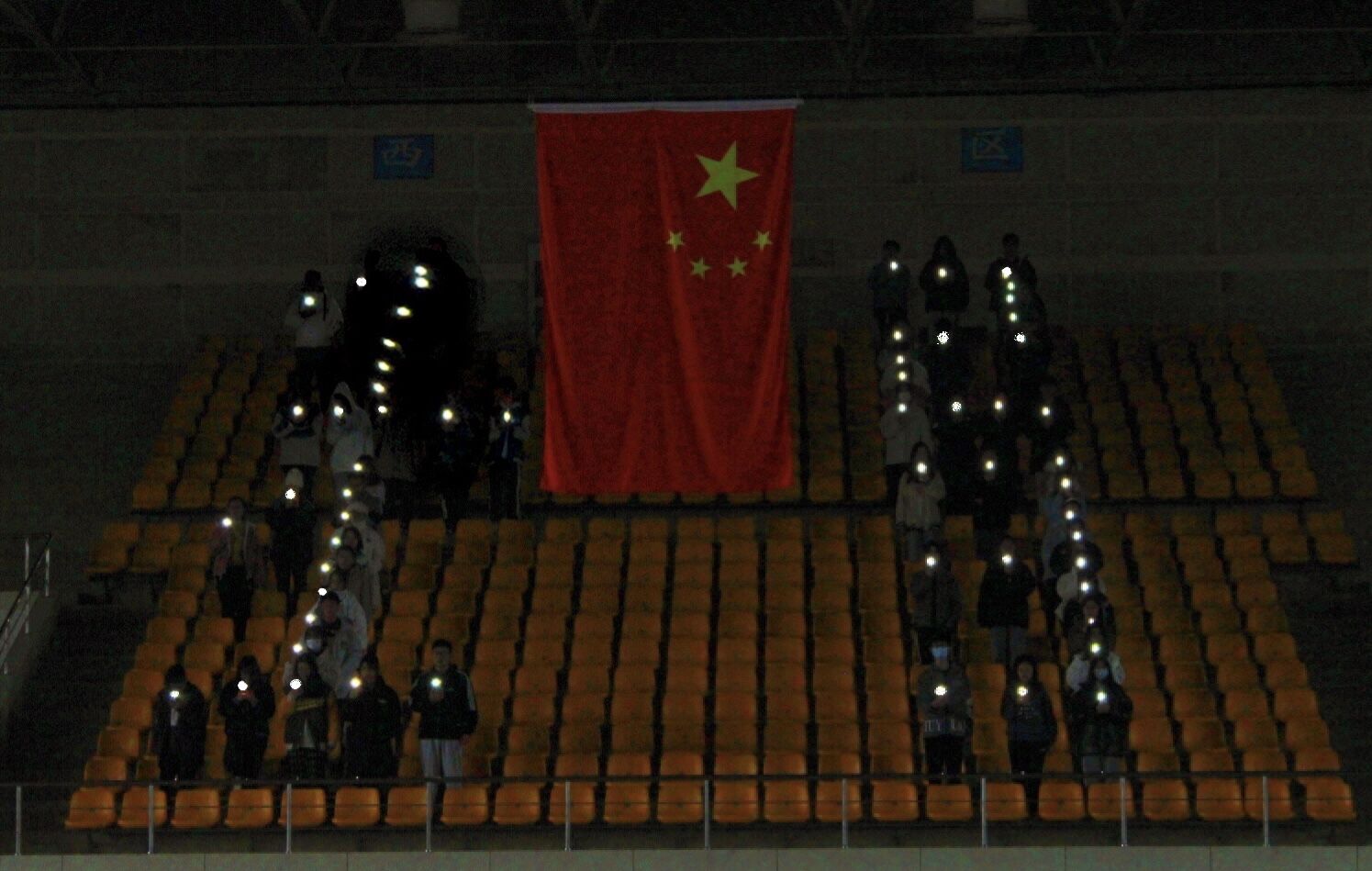 八点半,参加活动的60余名同学站成方阵,面向五星红旗齐声共唱国歌,喊出充满斗志的壮烈口号“以史为鉴,开创未来。铭记历史,强国有我。”海鲨特战旅退伍军人,B生物191班的张阔发言,她结合自己在部队的生活,回顾革命前辈们的艰苦奋斗,呼吁同学们要不怕困难,自信自强。2021级新生房冠辰同学代表发言,他表示真切地感受到历史的沉痛,但更为祖国今日的强大而自豪。作为大一新生,同学们应该努力学习,增强本领,创造未来。学生集中在体育馆,在黑暗中用手机闪光灯拼凑出12.13日期符号,祭奠遇难同胞,缅怀革命先烈。学生们还在学院会议室观看了国家公祭日的直播。直播结束后,学生们全体起立,向遇难同胞默哀。B海洋202的陈诗豪说道:“参与这次活动,我意识到国家公祭日绝不仅仅是为了发思古之幽情,我们更应该吸取历史教训,居安思危,痛定思痛,知耻后勇,刻苦学习。我作为学生干部,更要响应习近平总书记对中国青年“立大志、明大德、成大才、担大任”的号召。”