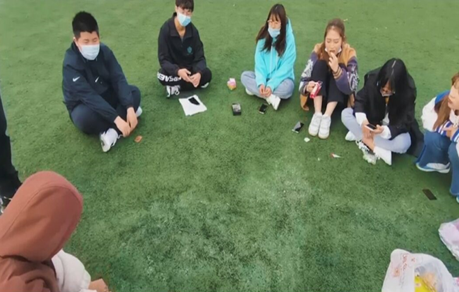 之后,班委带领全体同学在操场集合,同学们自由分组,各组先后进行了狼人杀、飞行棋、三国杀、谁是卧底、老鹰捉小鸡等游戏。活动结束后,不少同学仍是意犹未尽。B海洋211徐瑶同学感叹道:“这次组织的班级聚会活动让我们的友谊得以促进,疏解了我们封校的焦虑不安,感觉到快乐满满,希望下次还能有机会一起玩。”