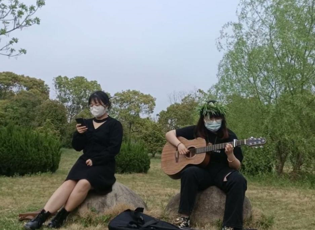 中午12点,舍长邹子赟带领其余5名舍友在操场放风筝,在草地上弹吉他唱歌,在微风的吹拂下,她们欢快的放着风筝,结束了放风筝的小活动,殷浩源和邹子赟同学在草地上弹唱了蝴蝶泉边,伴随着轻快活泼的音律,每个人都感到格外的放松,开心,大家一起唱了起来,氛围十分的欢快。