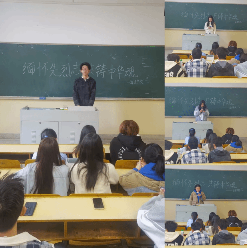 在知行楼召开了“缅怀先烈志,共铸中华魂”主题教育演讲。学生们分享自己所了解的革命先烈的英雄事迹与心得体会和家乡的清明节习俗。革命先烈们以宝贵的生命为代价,换来了如今的国泰民安、海晏河清,这其中有董存瑞先辈以凡人之躯开辟革命胜利道路的身影,有杨根思先烈战至生命最后一刻,抱起炸药包毅然冲向敌军与其同归于尽的勇猛果敢。来自生物212班查志伟说到:“清明节给我们带来的不光是沉重、悲伤及对死亡的畏惧,在对逝去之人缅怀与敬重的同时,我们更应展望未来,感恩先辈为我们创造的美好生活,感谢先人赋予我们的生命,如此才不会辜负逝去之亲人,牺牲之英烈。”
