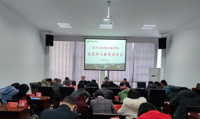 为深入学习贯彻校党委党史学习教育动员大会精神,贯彻落实相关文件指示精神,3月17日下午,海洋与生物工程学院在学院会议室召开党史学习教育动员会。学院党总支副书记刘正华主持会议,院长余晓红及学院全体教师党员参加。