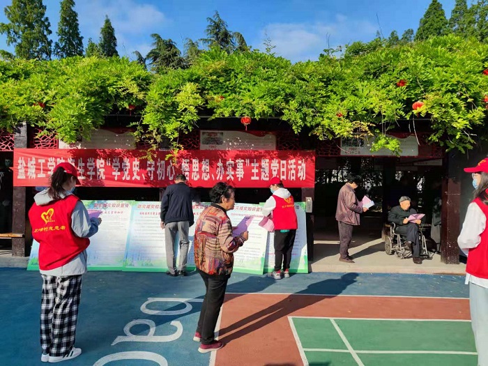5月12日是第13个全国防灾减灾日,为深化党史学习教育,进一步增强党员办实事能力,当天下午,海生学院党总支副书记刘正华、学生党支部书记毕蕾带队赴亭湖区五星街道万户新村社区开展“学党史、守初心、悟思想、办实事”主题党日活动,社区党委书记陈建东、支部书记蒋敏一同参加。