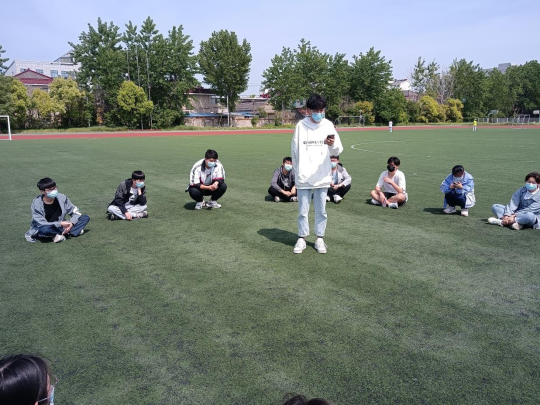 下午2点,青年团员们在操场间隔坐开,围成一个圆形,依次到圆形中央点,分享了对团史故事,交流如何做好一个新时代的团员的想法的建议。每一位同学都做了认真准备,积极思考,上网浏览查阅了有关资料,结合自己的亲身经历,撰写了心得。