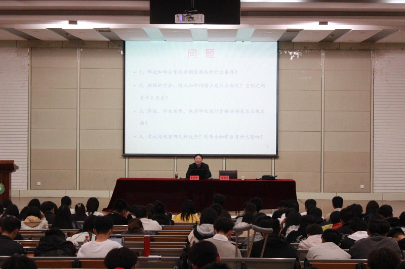 在学籍管理讲座中,李爱国从“毕业和学士学位分别需要达到的条件”“课程的学分、绩点和平均绩点的含义以及它们之间有什么关系”“降级、学业预警、取消毕业设计资格的规定”“考试违规有哪几种处分?对毕业和学位有什么影响?”等方面为新生做了详细解读,对少数民族照顾政策作了说明。他特别强调考试违纪与考试作弊的不同处分,以及严重后果,警示同学们要为自己负责,切勿考试作弊。他鼓励2022级新生继续保持积极乐观的健康心态,坦然面对学习生活中的压力与困难,遵守校规校纪,做一个“德智体美劳”全面发展的时代新人。