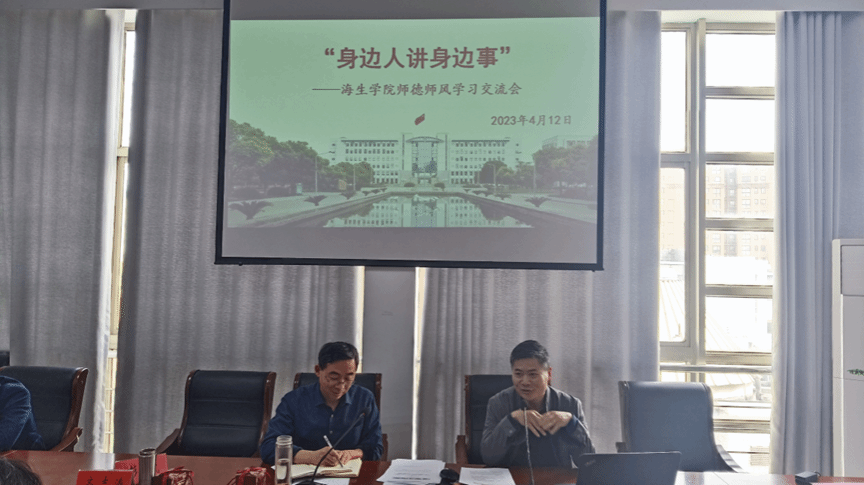 为深入学习党的二十大和习近平总书记关于教育的重要论述,积极营造风清气正的政治生态和育人环境。4月12日下午,海生学院在会议室组织师德师风学习交流会,邀请申玉香和陈洪兴两位老教授分享从教多年的感受和体会。会议由党总支书记高留才主持,副院长(主持工作)彭斌,副院长齐志涛、刘飞,党总支副书记毕蕾和全体教职工参加。