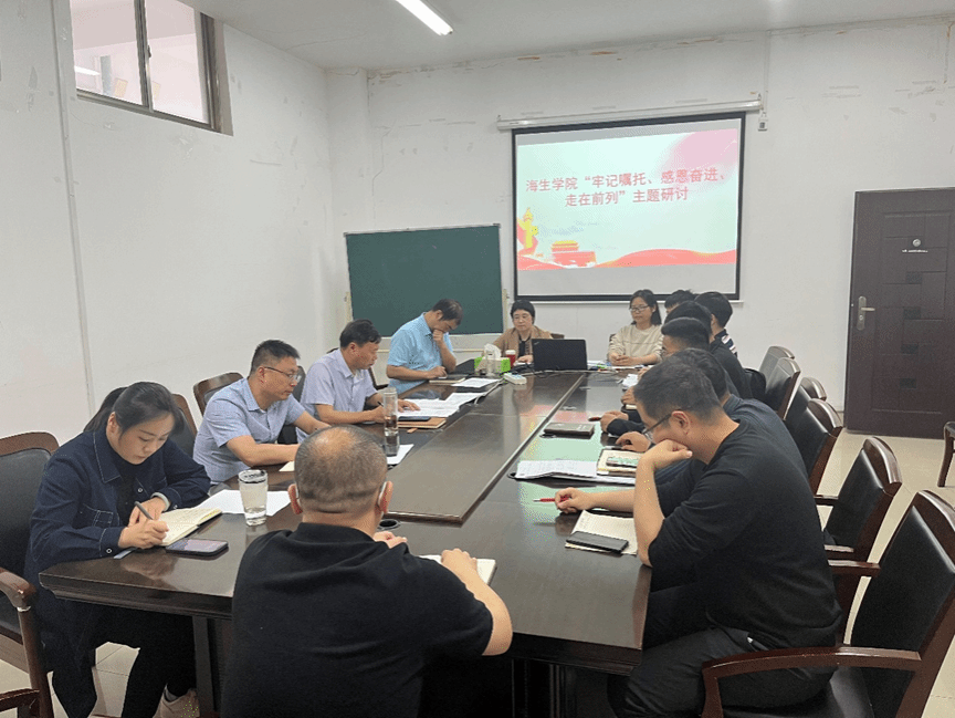 为深入学习贯彻习近平新时代中国特色社会主义思想,进一步推动主题教育走深、走心、走实,取得实效。6月5日,海生学院开展“牢记嘱托、感恩奋进、走在前列”主题研讨,学院领导班子全体成员参加。