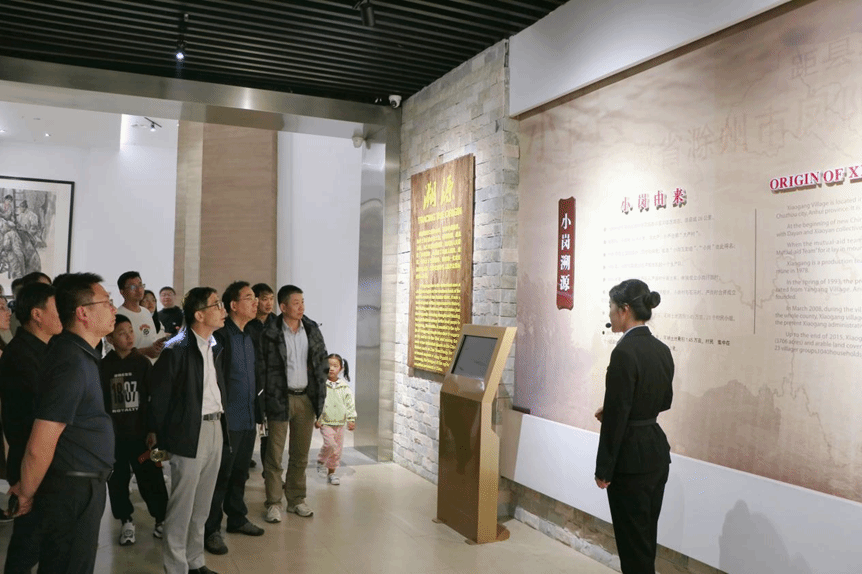在全国十大名村之一的安徽凤阳县小岗村,海生学院一行参观了大包干纪念馆。在讲解员带领下,大家认真观摩了“溯源、抉择、贡献、巨变、展望、关爱”6个展区以及大型人物雕塑《十八颗红手印》,听着农民冒着极大风险,按下分田到户大包干红手印的全过程介绍,通过图片、文字、雕塑等,了解了“大包干”从酝酿到发生、发展的全过程,重温了小岗村掀起中国农村改革序幕的历程,深刻领会了小岗村村民敢为天下先的开拓精神。在沈浩同志先进事迹陈列馆里,大家认真倾听讲解员关于沈浩同志生平和先进事迹的介绍。通过参观沈浩同志生前工作、生活以及带领小岗人民艰苦奋斗、加快发展的事迹展览,深入了解了沈浩同志沥血呕心、心系基层、为民谋利、公而忘私的崇高品质。