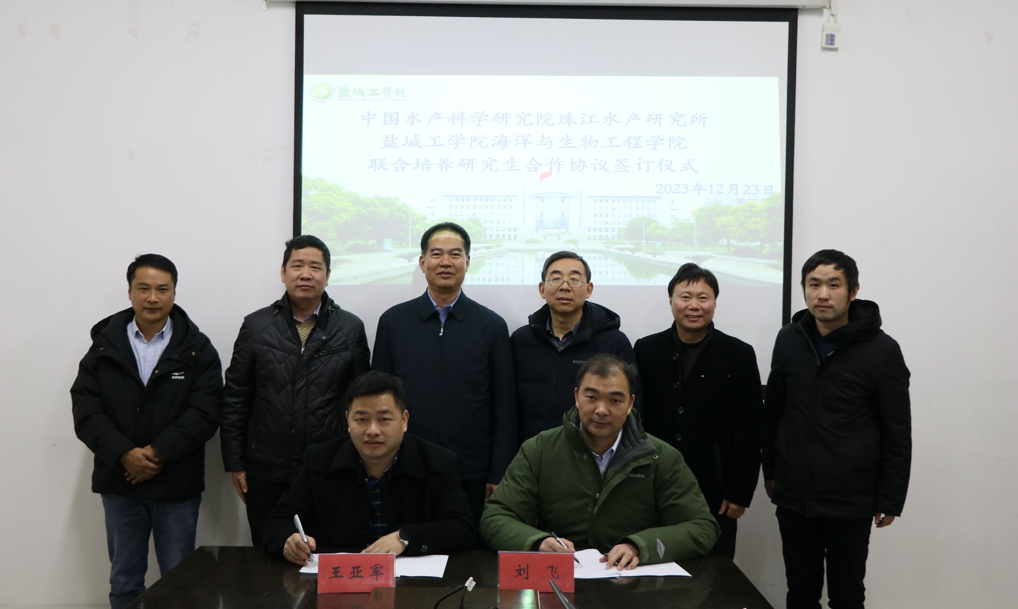 12月23日下午,海洋与生物工程学院与中国水产科学研究院珠江水产研究所联合培养研究生协议签订在海生学院会议室举行。珠江水产研究所所长徐瑞永、成果处处长王亚军、海生学院院长彭斌、副院长齐志涛、刘飞等参加签约仪式。仪式由海生学院党总支书记高留才主持。