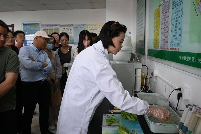 参观三龙镇农产品质量安全监管站对蔬菜药残进行现场检测演示