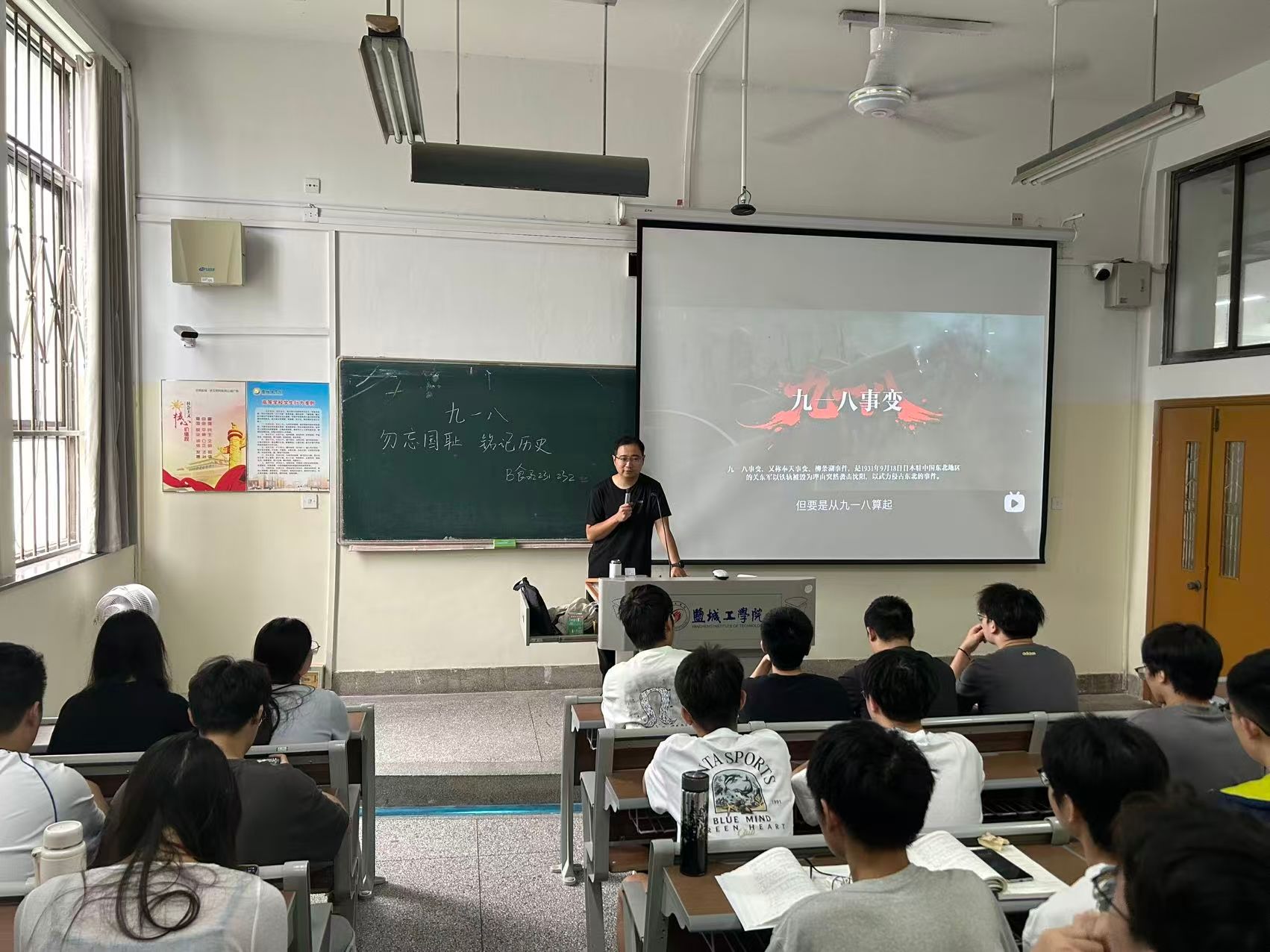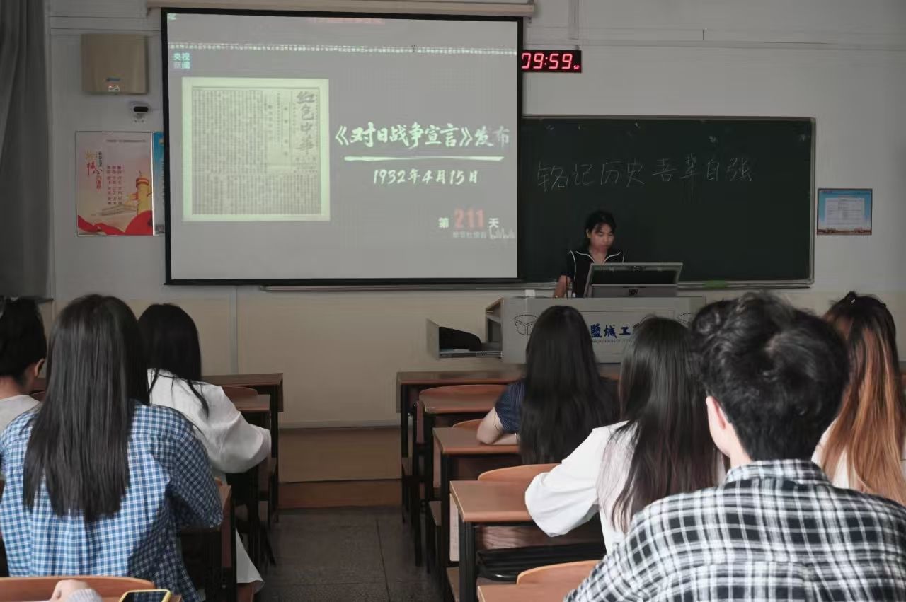 9月18日上午10时00分至10时19分,盐城工学院上空拉响警报,警报长鸣似声声呐喊:勿忘国耻!吾辈当自强!吾辈必自强!
