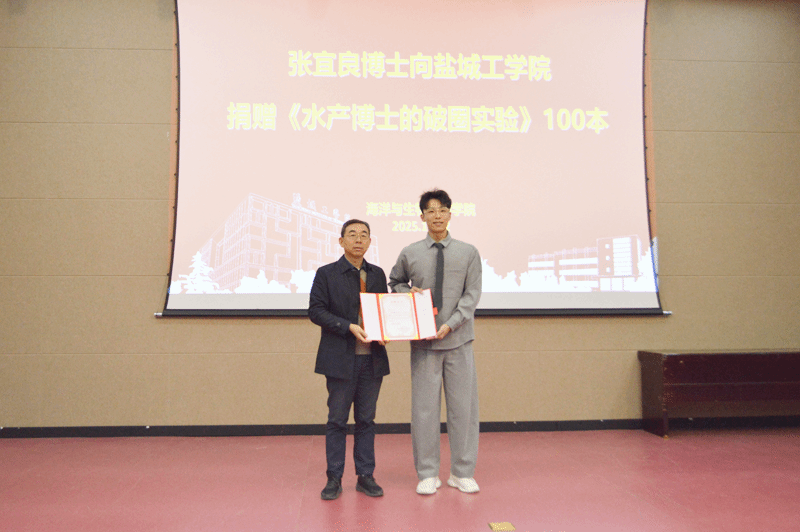 报告结束后,张宜良向海生学院师生捐赠了100册个人新作《水产博士破圈实验》,并寄语海生学子胸怀蓝色梦想,踏实科研,为全球粮食安全和生态保护作更大贡献。