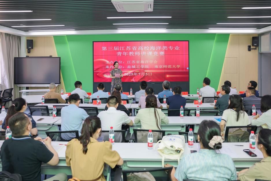 7月5日,第三届江苏省高校海洋类专业青年教师讲课竞赛在盐城工学院成功举办,本次活动由江苏省海洋学会主办,盐城工学院和南京师范大学共同承办。来自南京大学、南京师范大学、河海大学、南京信息工程大学、南京工业大学、江苏海洋大学、江苏科技大学、南通大学、南通理工学院、江苏第二师范学院、盐城师范学院和盐城工学院等10余所全省涉海高校40余名专家和教师参加本次活动。