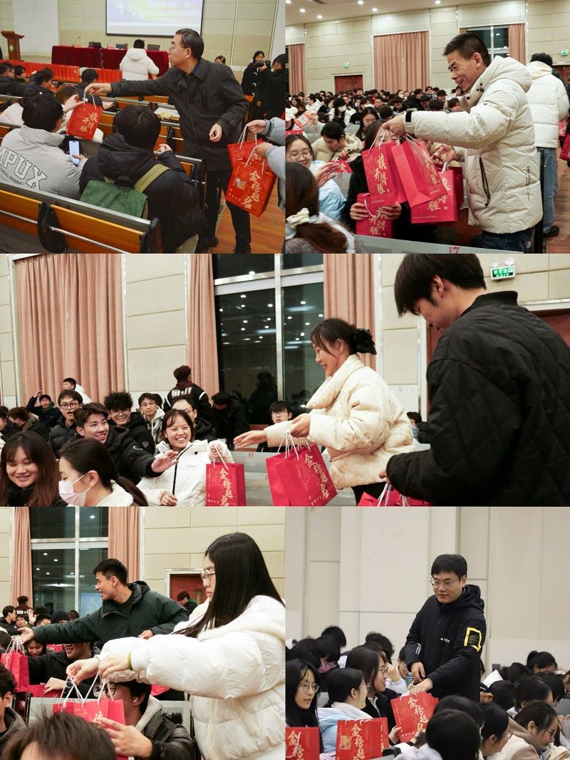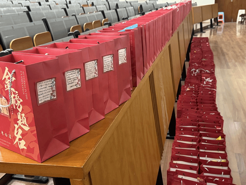 学院为考研学子准备了寓意深长的“金榜题名”加油包:寓意“步步高升”的大糕、“事事顺意”的薯片、“数你最棒”的糖果、“活力满满”的饮料及“逢考必过”的文具,寄托着对学子们的美好祝愿。学弟学妹手写的祝福卡片更添温情。每一份礼物都承载着学院的殷切关怀与诚挚期待,愿所有学子笔锋所至,梦想开花。
