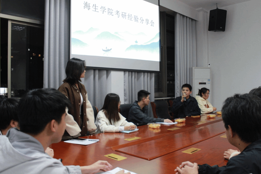 为帮助新生做好职业生涯规划,尽早确立大学人生目标。4月12日晚,海生学院在学院大会议室召开考研经验分享会。本次分享会邀请考研优秀学生梅文龙、葛亦惠等三位19级海洋专业的学长学姐为同系22级同学做考研经验分享。