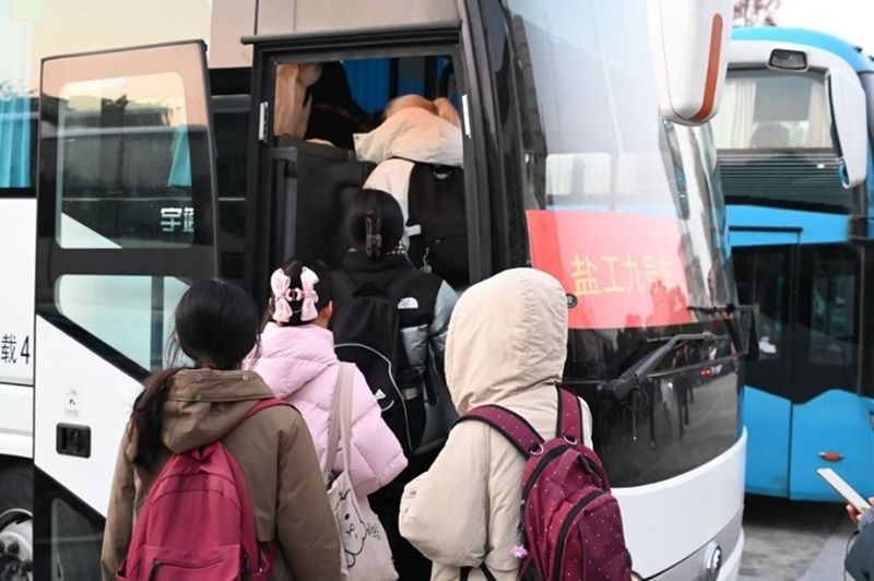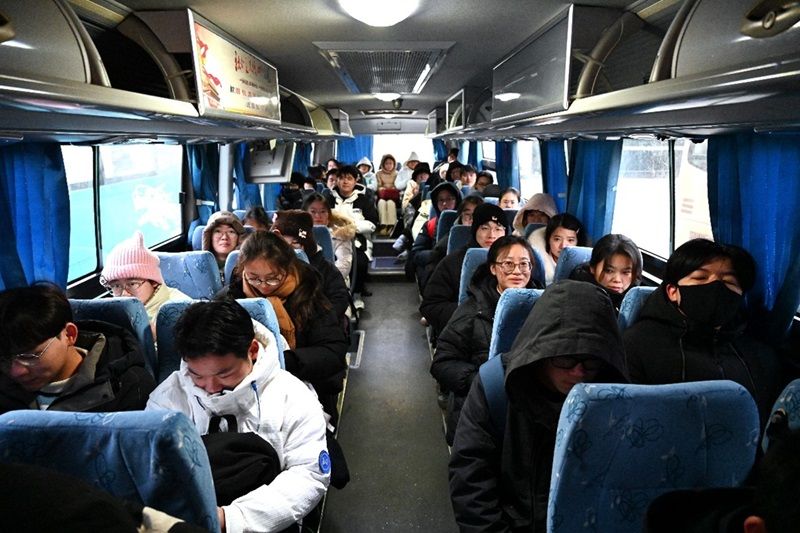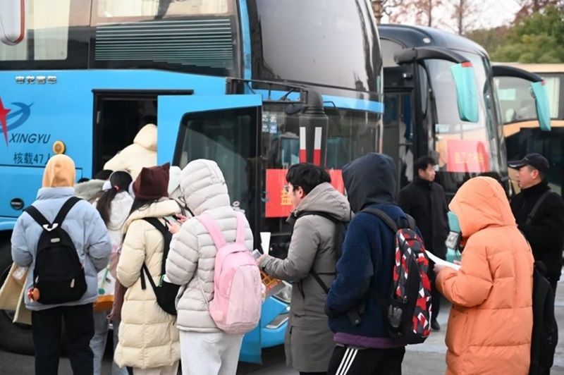大巴车出发前,送考现场的老师们温馨提醒考生们检查考试必备材料是否齐全,确保他们在考场上不会手忙脚乱。校园内凛冽的寒风,吹不散考研学子热切的心。一辆辆大巴车满载着希望与梦想,将每一位学子送往他们心中的彼岸。