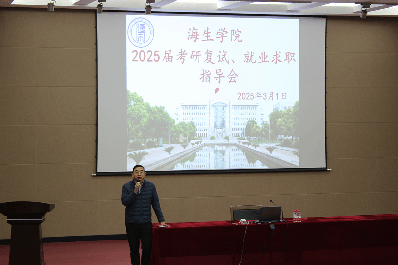 为助力2025届毕业生科学备战考研复试,提升就业求职竞争力,3月1日,海生学院在五四报告厅召开2025届考研复试、就业求职指导会。学院党总支书记高留才主持会议,副院长齐志涛,副书记孙新华出席,教科研办公室副主任陈小冬,学工办主任郭海松,毕业班辅导员及全体在校毕业生参加。