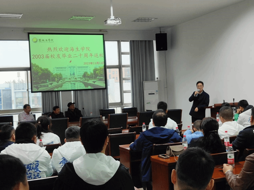 在海生学院会议室,副院长刘飞主持联谊会,代表学院对各位校友的返校表示热烈欢迎,介绍了学校的发展变化和海生学院的发展历史,以及近年来在学科建设、人才培养、科学研究等方面取得的成绩。他表示,校友们在这二十年面对各种挑战,勇敢地努力工作,不断追求进步提升,为社会做出积极贡献,成为单位和家庭的中流砥柱,是学院的骄傲,也希望校友们继续关心支持学院和学校的事业发展,一如既往地献计献策。